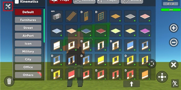 点击左上角的工具图标,打开资源工具页面,玩家可以选择多样的资源道具进行建造,创造属于自己的世界。