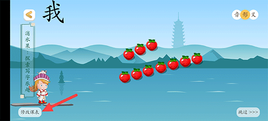 将学习和游戏巧妙结合,通过游戏场景与古代汉字的联系,展现汉字演变的历程,并把学到的汉字串联成古诗,激发学习兴趣。