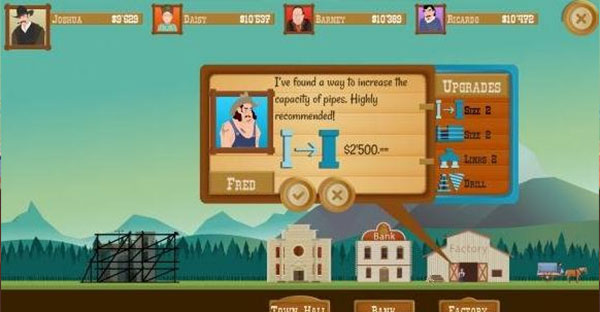 1、提供众多升级选项和新工具,助您提升石油开采业务效率。2、在镇上的沙龙与当地人物交流,进行秘密商业交易。