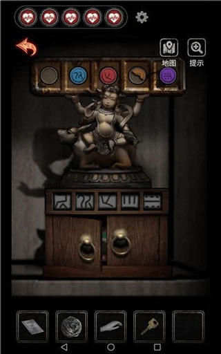 在2009年的场景中,找到大柜子里的雕像,结合先前找到的工艺品和图案,得到密码。