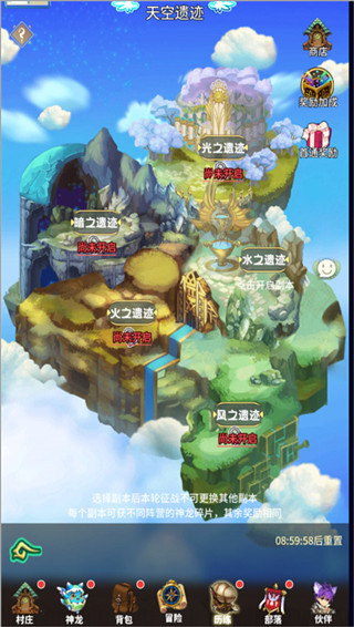 地图中包含多种事件,如宝箱守卫租借神龙、增益技能、随机奖励等击败宝箱守卫或首领可获得大量幻界晶石和金币。