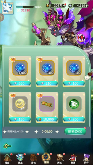3. 神龙种类多样,多种养成方式提升属性和技能。