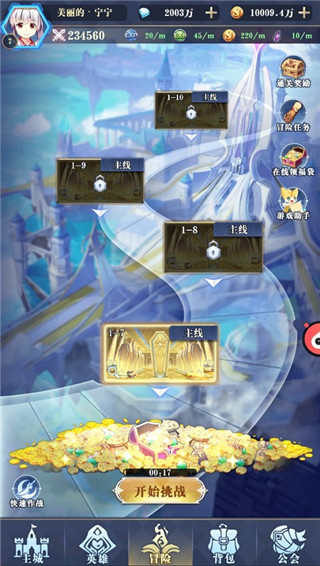 在挑战Boss的过程中可以获得各种通关奖励,如装备、行动力、金币、英雄经验、主角经验等奖励,通关奖励、冒险任务、在线福利袋、挂机收益、快速作战等玩法也能获得丰富的奖励