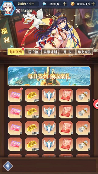 玩家每天登录即可在福利-送千抽界面中领取100连抽,最多可以累计领取1000连抽