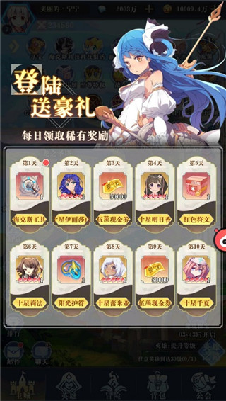 玩家每日登录签到即可领取10星神级英雄、现金券、红色符文、阳光护符等极品道具