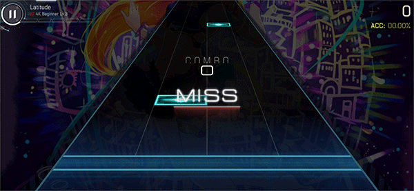 5、长条方块需长按,方块越接近目标线获得分数越高,漏击则不得分;