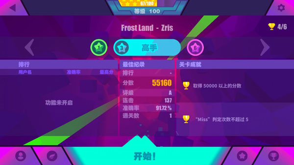 例如,歌曲"Heart-Pounding Flight"时长短,难度适中,非常适合重复挑战提升等级。当然,你也可以选择其他喜欢的歌曲进行刷级。