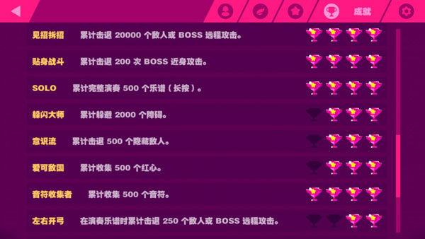 奖杯挑战多种多样,例如Miss判定、连击数、总分数、完美打击、开启Fever状态次数等。建议新玩家首先尝试总分数和开启Fever次数的奖杯,这些相对容易完成。