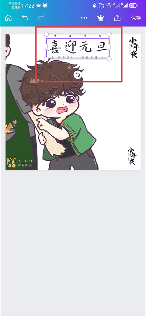 3、点击文字后,调整大小和位置。