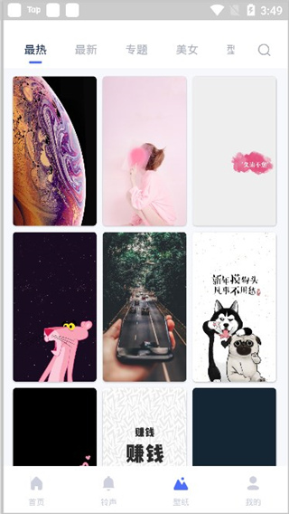 4、壁纸分类:包括最新、最热、专题和美女等多种分类。