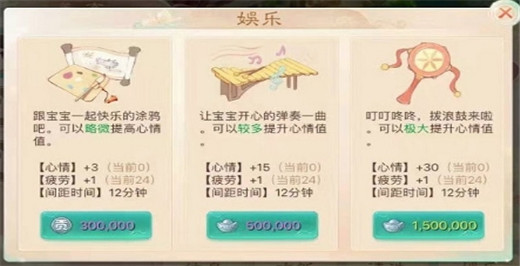1、每位孩子每天可被安排5项日程,日程可分为【工作】、【学习】、【娱乐】三类。【工作】可赚取养育金,但会增加疲劳;【学习】需消耗养育金,但会提升孩子各项属性和疲劳;疲劳可通过【娱乐】消除。家长们务必注重劳逸结合,收支平衡~