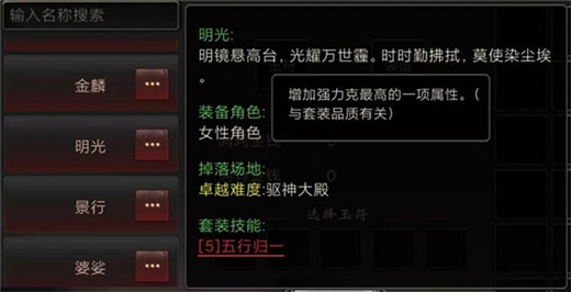 技能效果:增加当前强力克最高的一项属性。(与套装品质有关)