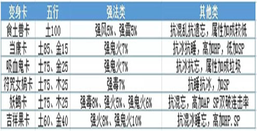 五行归一的劣势在于他并没有完克五行,所以这里还是要小小分析一波,各种完克变身卡的选择(以下内容有些枯燥,各位见谅,该提还得提 )