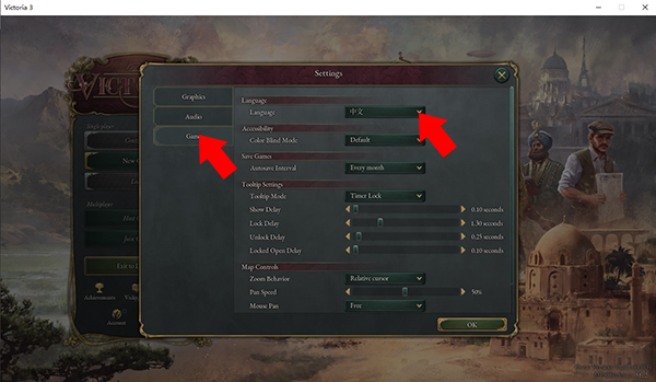 在文档找到P社再找到V3(VICTORIA3)里面所有的文件夹全部删除就可以用中文玩了,