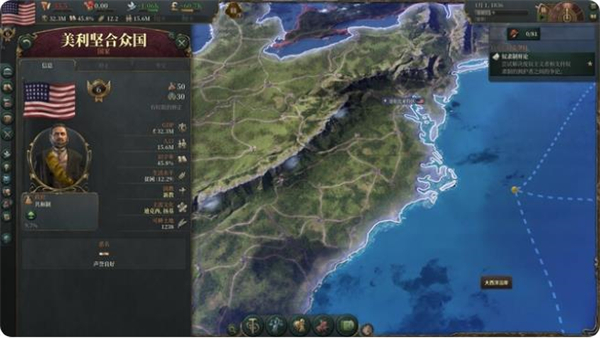 以上是对美国的国家数据概览,从这些简约的界面我们可以快速把握GDP、人口数量、识字率、生活水平等众多关键信息,它们是玩家做出策略决策的依据。