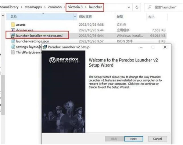《维多利亚3victoria3》生成错误、启动游戏失败、启动 器打不开等问题,可能是游戏启动器没有安装导致的,玩家可以进入游戏安装路径(steam库右键游戏-管理-浏览本地文件),点击launcher文件夹,点击“launcher-installer-windows.msi”安 装游戏启动器。然后再重新在steam启动游戏。