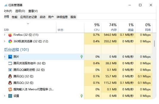 打开后台程序操作系统,关闭多余后台软件减少后台资源占用。在关闭多余进程后,不仅可以减少网络占用,还可以减少运行空间的占用。