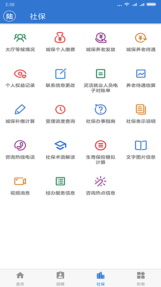 1、快速查询个人社保信息,随时了解最新政策;2、公共招聘版面,方便职位发布和在线应聘;