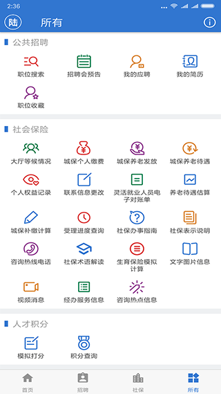 1、集成职位搜索、积分查询、职业资格和用工备案等;2、人才积分模拟计算等多应用功能整合;