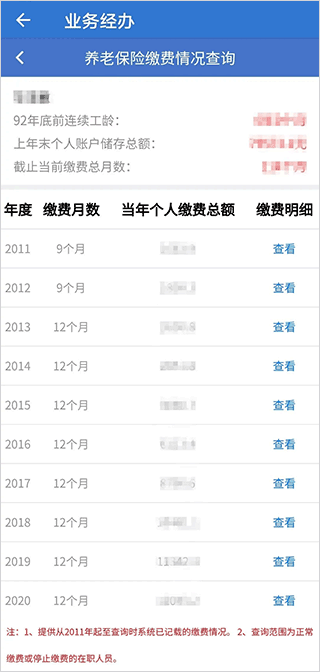 4、即可查询从2011年至今的缴费记录。