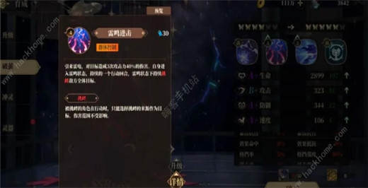 引来雷电,对目标造成3次攻击力40%的伤害。自身进入雷鸣状态,持续的. 个行动回合,雷鸣状态下持续挑衅敌方全体目标。