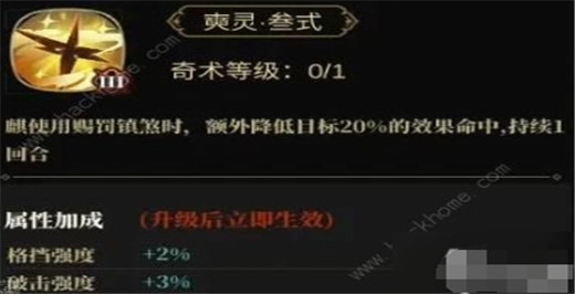 奇术二:给二技能提供降低对方效果命中的效果,目前环境需要高速麒开三技能所以也不推荐。