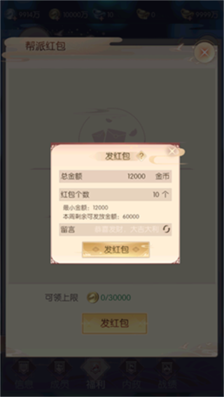 2级帮以上且帮派同时在线人数超过20才可以发红包