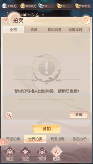 帮派拍卖中的流拍商品将流入世界拍卖中,全服玩家都可以对其进行竞拍。