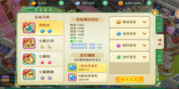 2、宝石合成界面右侧显示当前合成宝石的等级,以及宝石的属性