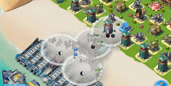 c. 长射程、高伤害岸防御:野人登陆后,使用引导弹。