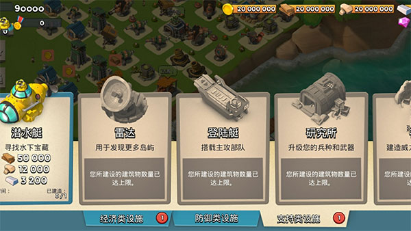 玩家可以在自己的海岛上建造房屋、兵营、炮塔、采石场、木材场等设施,并装备各种武器,如机枪、大炮和火箭发射器,创造一个属于自己的世界。玩家需训练士兵、建造舰艇,发动战争,体验刺激的战场氛围。游戏中玩家需要从简单到复杂,逐步建立强大的军队,并精心策划战术布局,才能赢得一场又一场的海岛争夺战。