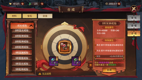 此外,苍龙劫手游还可以合成更高品质的装备,从而增加额外属性。