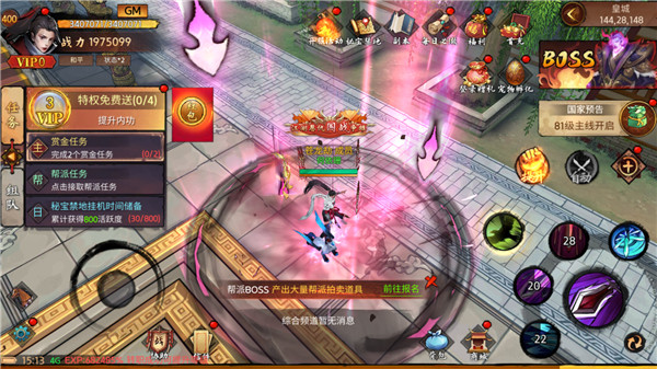 参与国战,通过竞速通关国家之塔、跨服争霸和跨服阵营战等活动,玩家可以获得珍稀道具,体验激烈的战斗乐趣。