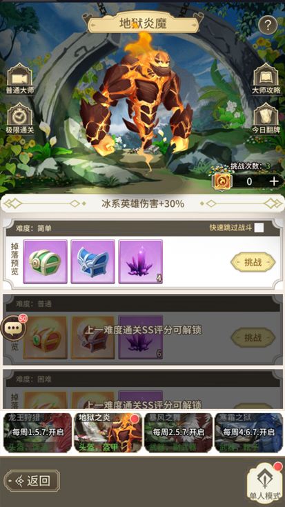 在迷失之岛的冒险中,您将面对四个独特的BOSS,每个都有自己的弱点。您需针对它们的弱点,选择合适的阵容进行挑战,从简单到深渊不同难度层层递进,挑战成功将会获得丰富奖励。
