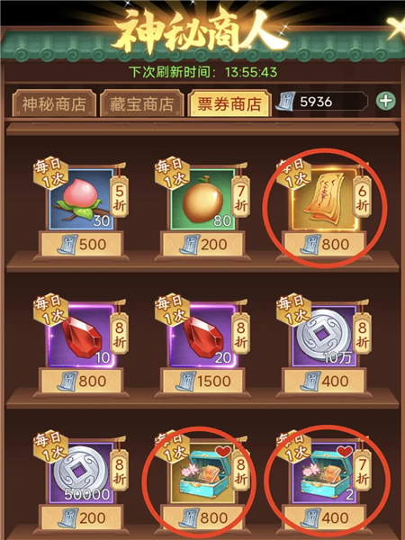 ③ 红尘契 (旧友重逢必备物品,价值高,因为每日获取途径少,只能通过藏宝商店买五个,这里的必买)