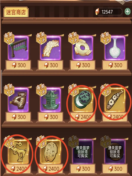 ① 兑换金色古董(不需要兑换紫色,紫色打迷宫的时候会随机掉落的,金色古董优先兑换没有解锁的和个数少的,以及马上要升星的)