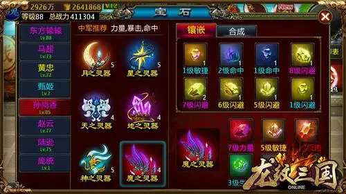 现在宝石系统每一个灵器可以镶嵌的宝石孔数由2孔提升到4孔。基本原则仍然是不要空出镶嵌位,每一个孔都镶上宝石。有多出来的宝石就通过升级来减少数量提高质量。这样可以将战斗力最大化!建议提前准备好一批宝石,等级一到立刻就装上,宝石等级较低也无所谓。