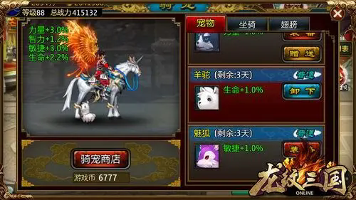 骑宠坐骑能按百分比提高玩家属性,只定时少量放出,属于极度稀缺的资源。即使符合购买条件,也不一定买得到,有缘购入的玩家一定要好好珍惜哦!