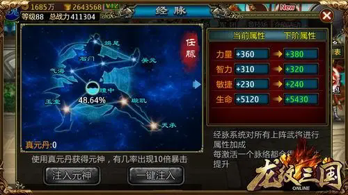 英雄榜奖励的真元丹可以派上用场了。可打通各路经脉、提高场上武将属性,是一次打通终生享受的好系统。大家平常就要注重真元丹的获取哦。