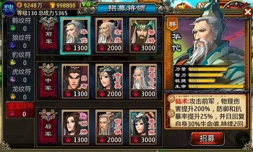 红将里面,前军华佗作为一个肉盾可以加血加防,技能优异。中军吕布的点杀能力非常恐怖,如果需要快速秒杀对方中军,吕布是不二人选。后军貂蝉则对敌方前军有较强的控制能力,可以用来专门克制前军暴力流。