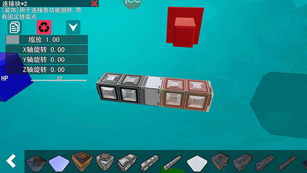 首先根据飞行器的大小,我们要选择不同大小、尺寸的连接块,用于链接、制作机械的外壳。当然,如果想挑战一下自我,还可以为飞行器添加钢筋用于加固哦。