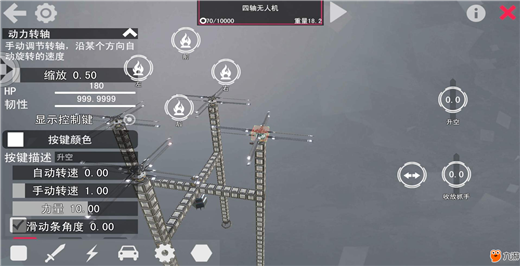 安装完成后,最重要的一步就来了,我们要通过点机械名称旁的按钮来使机械进入模拟场中,测试它的运动状态。将旁边的飞行按钮上拉,即可测试飞行状态。然后根据出现的问题,调整不同零件的参数。有的人飞行器会飞不起来,有的人飞行器会偏离直飞的轨道,还有像小编一样一着陆就散架了的.......遇到这些情况不要担心,合理排查出现问题的位置,调整当前螺旋桨扇叶参数,或者检查机械连接是否牢固,即可轻松解决。