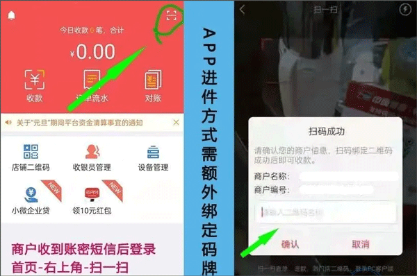 1、商户登录云闪付收银台app后,点击首页右上角的扫一扫图标,扫描二维码牌,输入商户名称完成绑定。