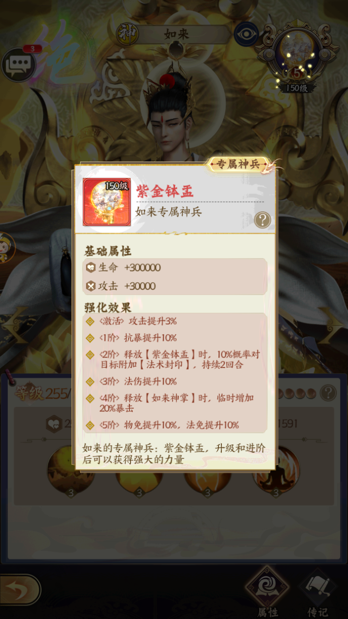 基础属性:生命+30w,攻击+3w