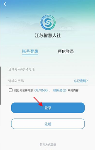 1、打开江苏智慧人社app,选择合适的登录方式进入账户;