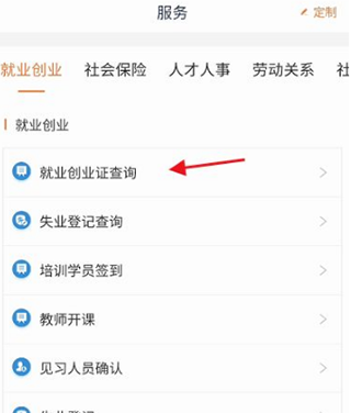 4、找到就业创业服务选项,点击进入就业创业证查询,输入相关信息进行查询。