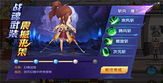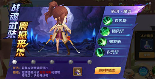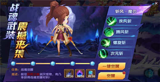 5.完成上述的挑战后,得到认可的冒险家将能得到使用战神之力的资格,通过收集战魂碎片(目前可获得的战魂:斩风·魔刃、炽焱·1-17),即可随时切换形态,重塑战神之力,利用战魂独有的技能高效战斗。