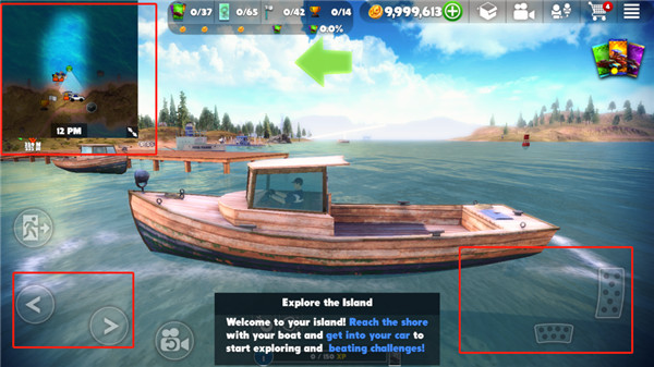 2、游戏开始后,您将在船上,通过左侧按键控制方向,右侧按键控制油门和刹车;