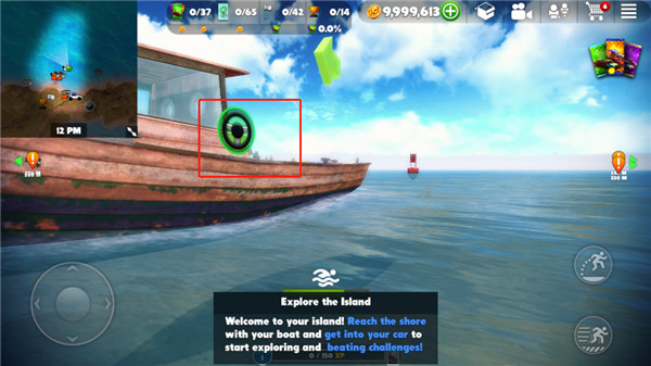 3、您还可以跳下船,以第一人称视角体验游戏。点击绿色圆形图标上车或上船;