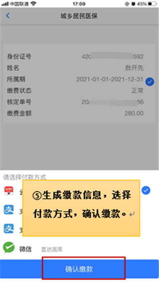 5、生成缴款信息,再次确认无误后,选择相应的付款方式,点击确认缴费。